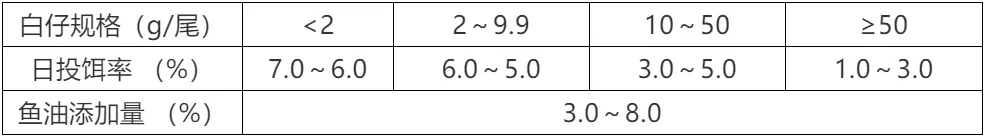 « 根据存池白仔的规格及数量、气候、水温、水质、白仔的生长及摄食状况等因素进行适当地调整。